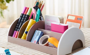 Common desktop pen holders, storage boxes with partitions, drawer storage, book stands, etc.