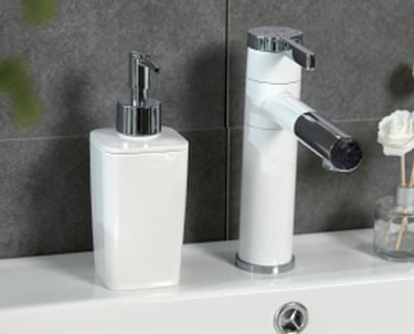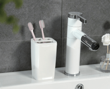 The set includes basic toiletries storage items such as mouthwash cups, toothbrush holders and soap containers, each of which has been carefully designed to ensure that it is practical and coordinated.