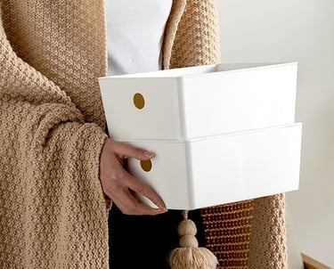 Our storage boxes feature a timeless design with an array of size options to cater to diverse needs. Crafted with smoothly curved edges and a non-angular silhouette, they prioritize safety and cater perfectly to households with children. These versatile containers are great for organizing snacks, toys, and intimate clothing.